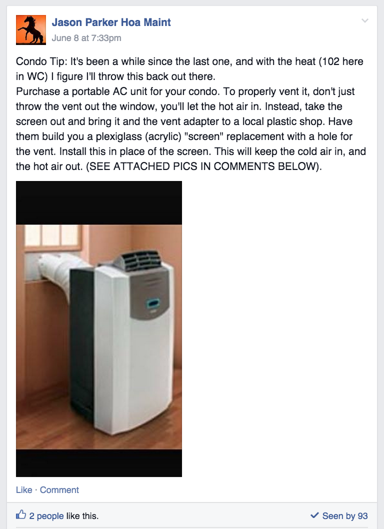 Jason Parker is a handyman who helped our HOA on various small projects in the building. He has built a reputation for being helpful not just by fixing things and helping people install new lights, TV mounts and electrical wiring, but also because of the tips he offers on Facebook from time to time, just for the good of the community. Every few weeks, Jason posts a tip to our private group page which is very helpful. He doesn’t ask if anyone needs help or offer his services. He simply provides useful information out of the blue. This is usually information which someone might need and use at some point, but it is unsolicited and just plain helpful. What this does is keep Jason top of mind for building residents and homeowners. It also makes people feel like they know and understand Jason and that he can be trusted. Then the next time someone needs some done work in the building, who do you think they think of first? That’s right Jason Parker HOA Maintenance man is who. He’s also available via text and phone and is just a really good guy. He has used power of help to build strong relationships with residents of our building and in so doing, we trust him and think of him first for any odd jobs that we need to get done.