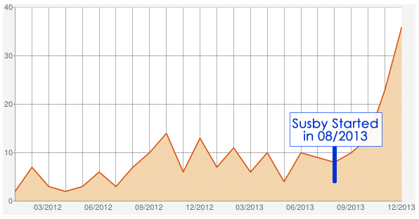Dollar signs of course! And we saw a significant increase in the number of sales in Q4 2013 compared with all previous sales on the website. We started optimizing the website in August and adding the other responsibilities in September. As you can see from the chart below, the numbers speak for themselves.