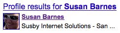 As I write this post, the Susan Barnes that is me, is indeed listed on the first page of Google, but currently only because I have a Google profile. So lesson number one for those of you with common names like “Susan Barnes,” make sure you create your public Google profile.