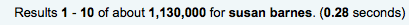 “So what?” you say. Well, as of the date of this post there are 1,130,000 results for a search on “Susan Barnes.” This number is likely to continue growing dramatically, so if you’re stumbling upon this post months or years after it was uploaded, look at the number of search results for Susan Barnes now.